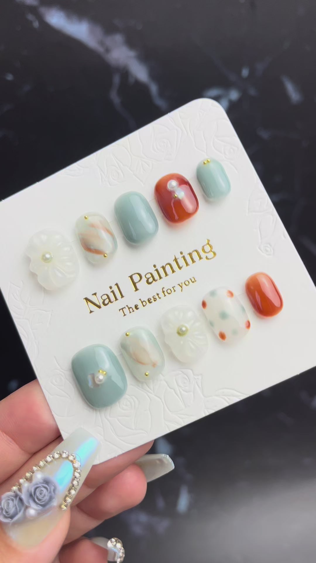 • ✦ デザイン:マーブル/ドット/立体フラワー/パールポイント